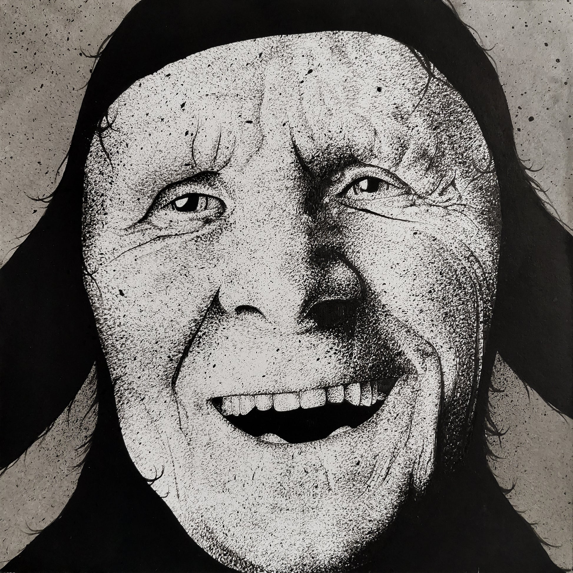Ink and acrylic on cotton paper mounted on a tamboured wooden panel