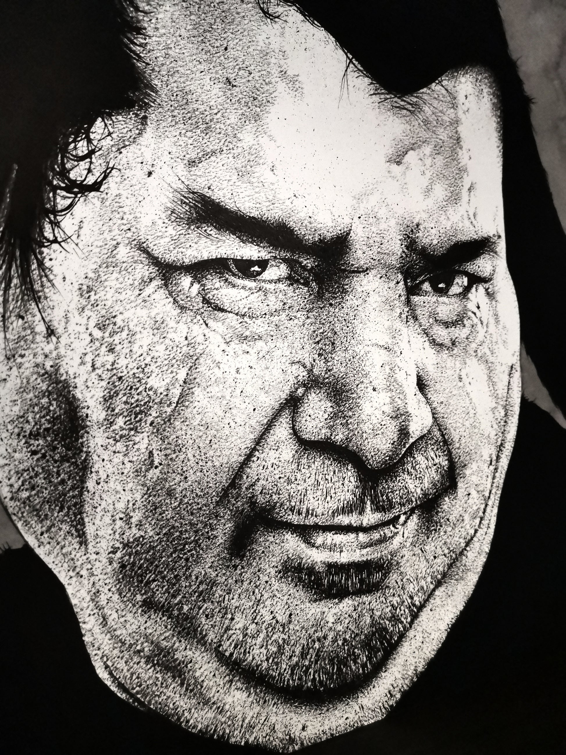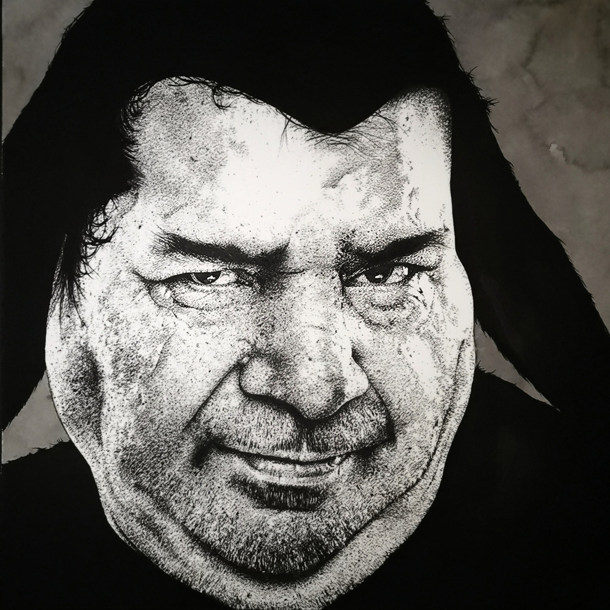 Ink and acrylic on cotton paper mounted on a tamboured wooden panel