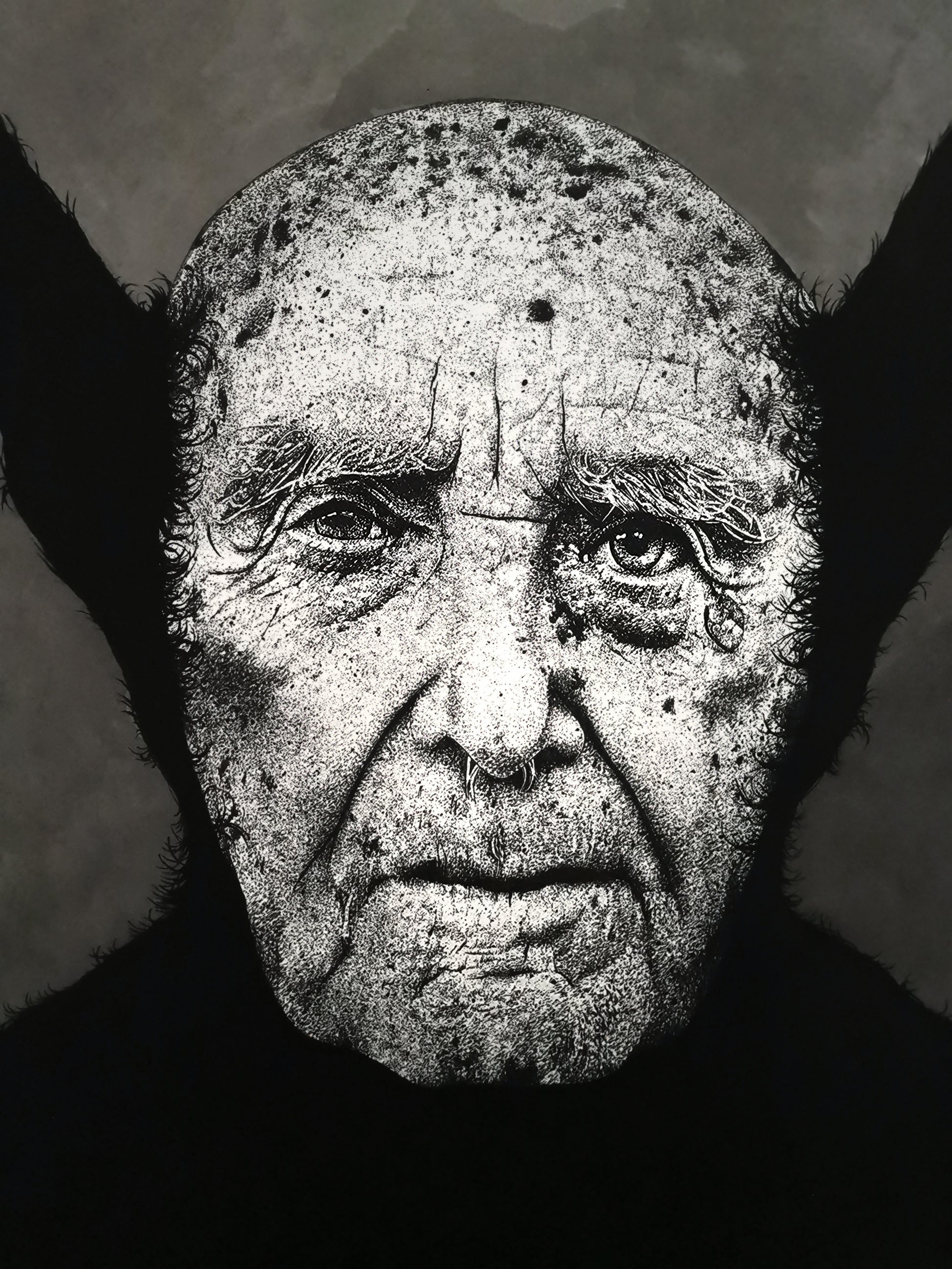 Ink and acryic on cotton paper mounted on a tamboured plywood panel.