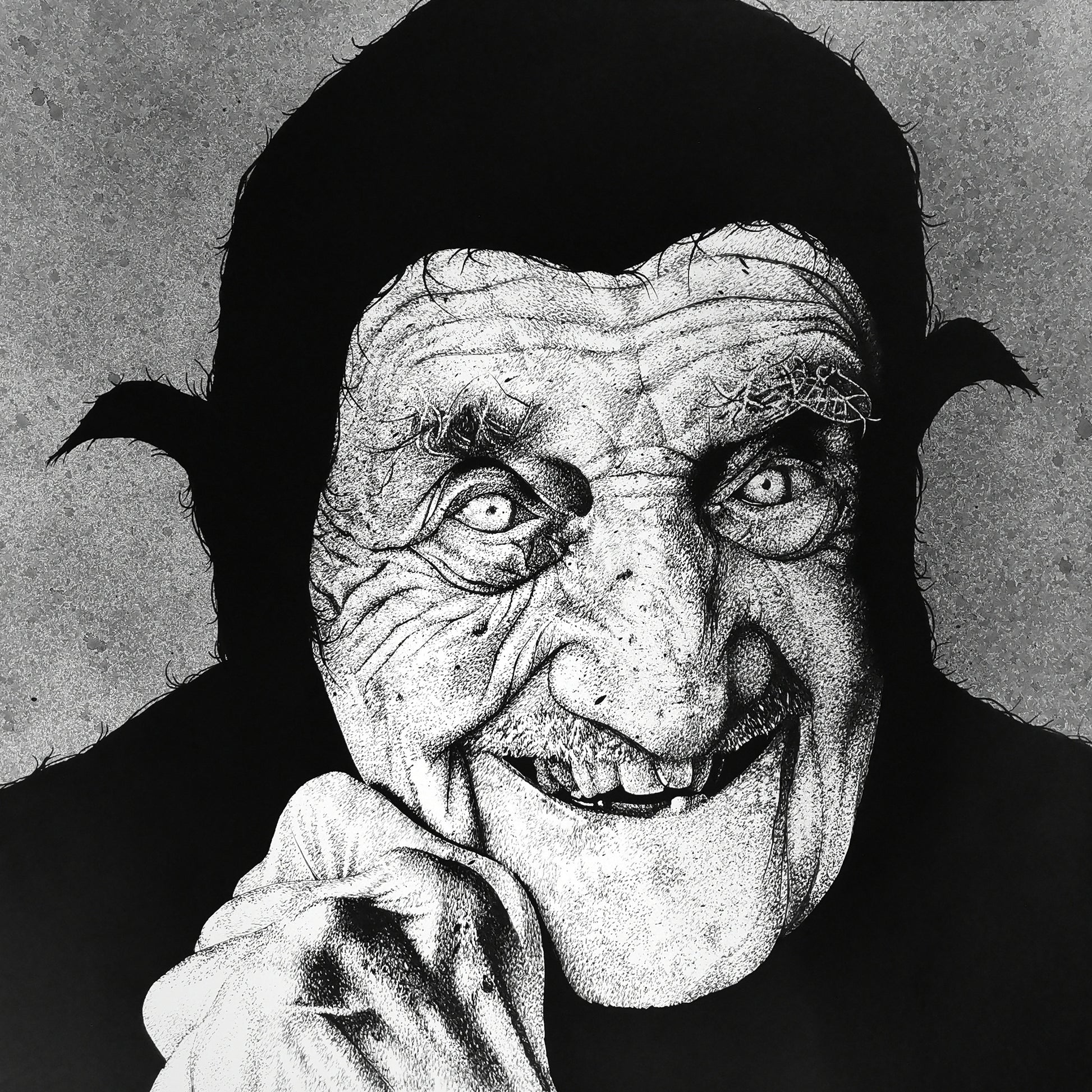 Ink and liquid acrylic on cotton paper mounted on a tamboured wooden panel